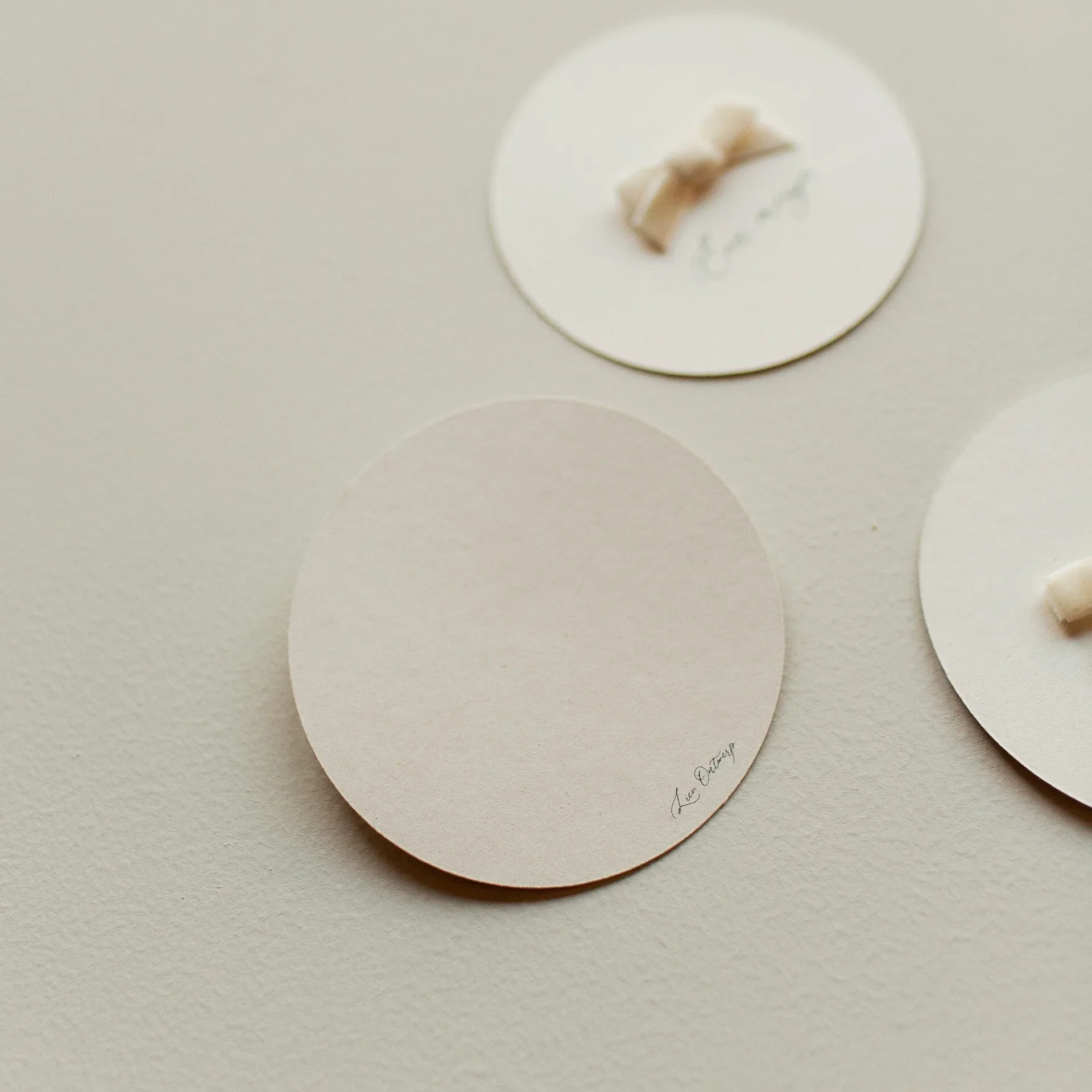 Ronde kaart op eco vezel papier (licht beige kraft), met kraft kleurige envelop.