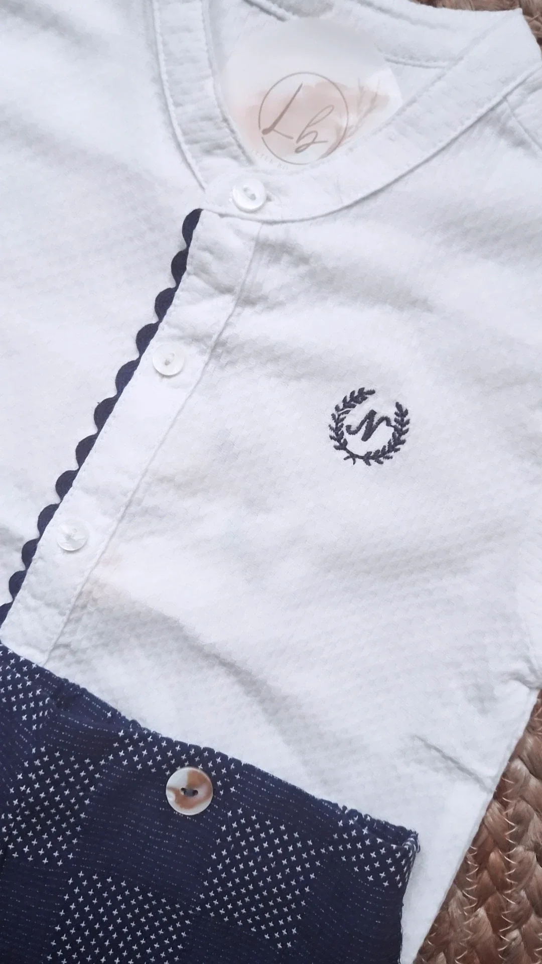 Luchtige blouse en broek met mooi borduursel langs de knoopjes en mouwen.