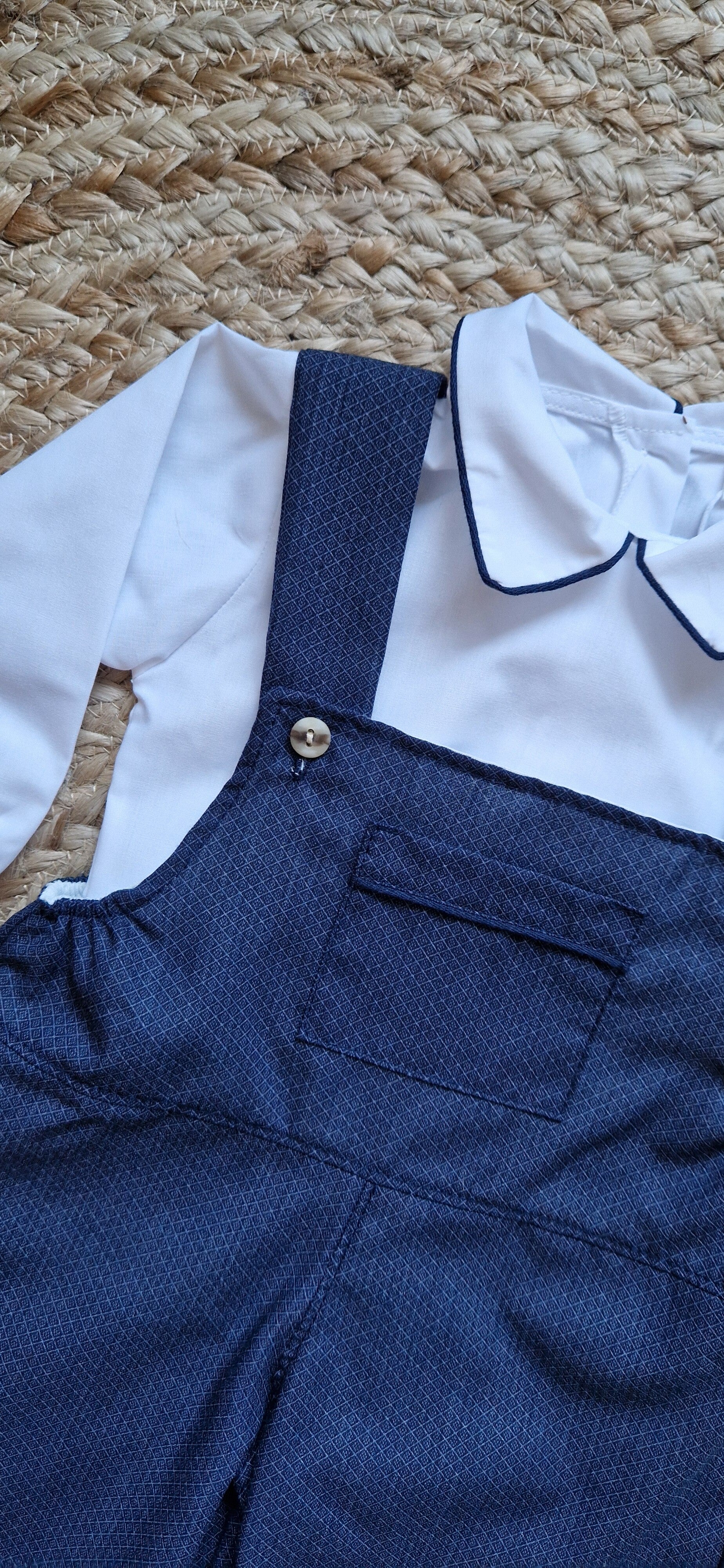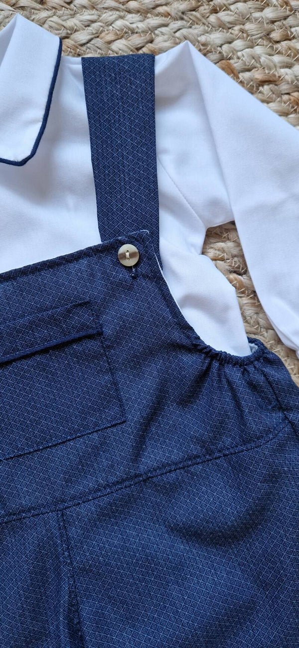 Klassiek set met blouse en tuinbroek donkerblauw.