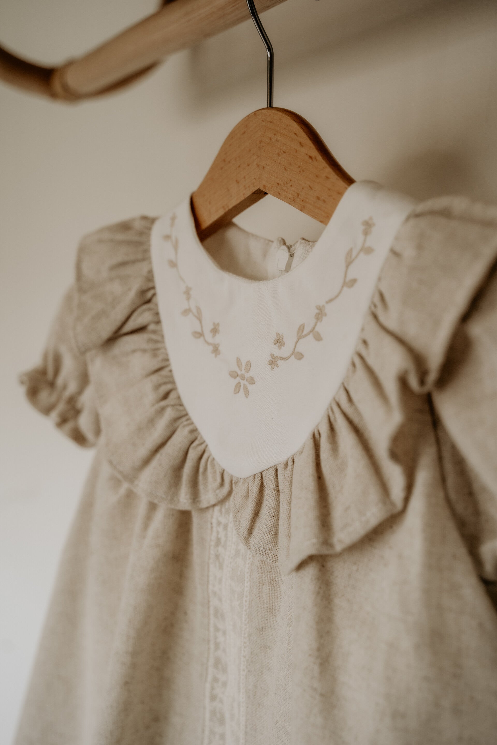 Prachtig meisjesjurkje met volant in lichte tinten.