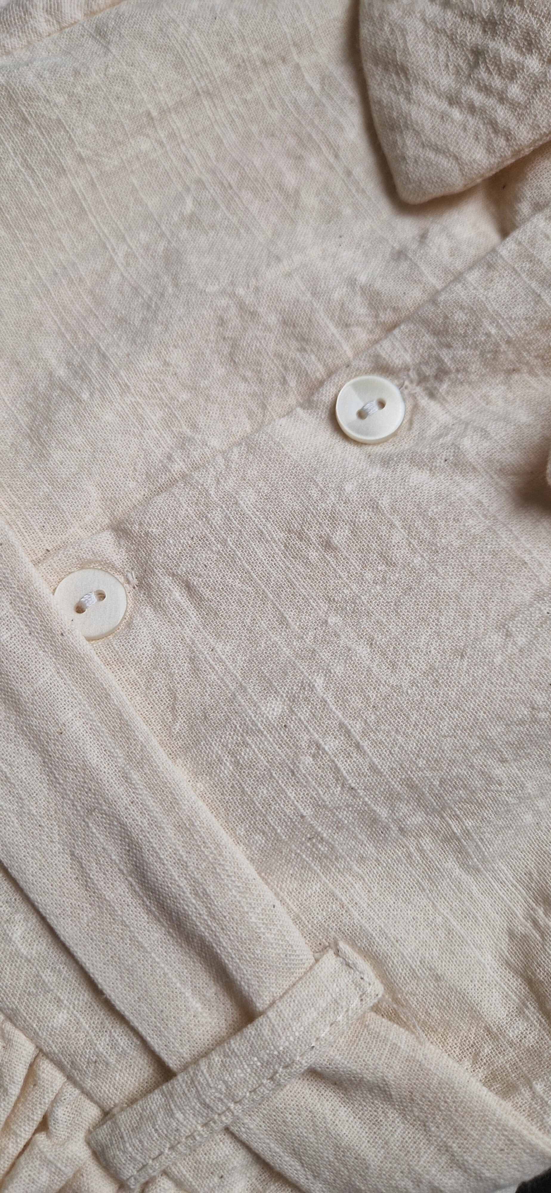 - Pofmouwtjes: Afgewerkt met subtiele rimpels voor een speels effect.