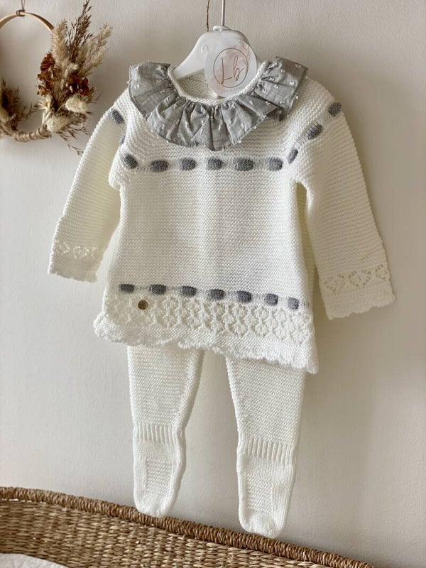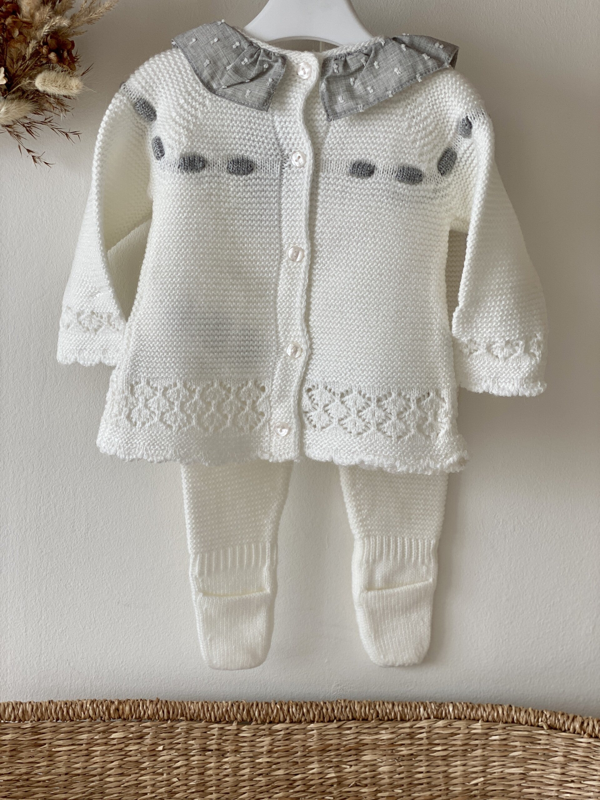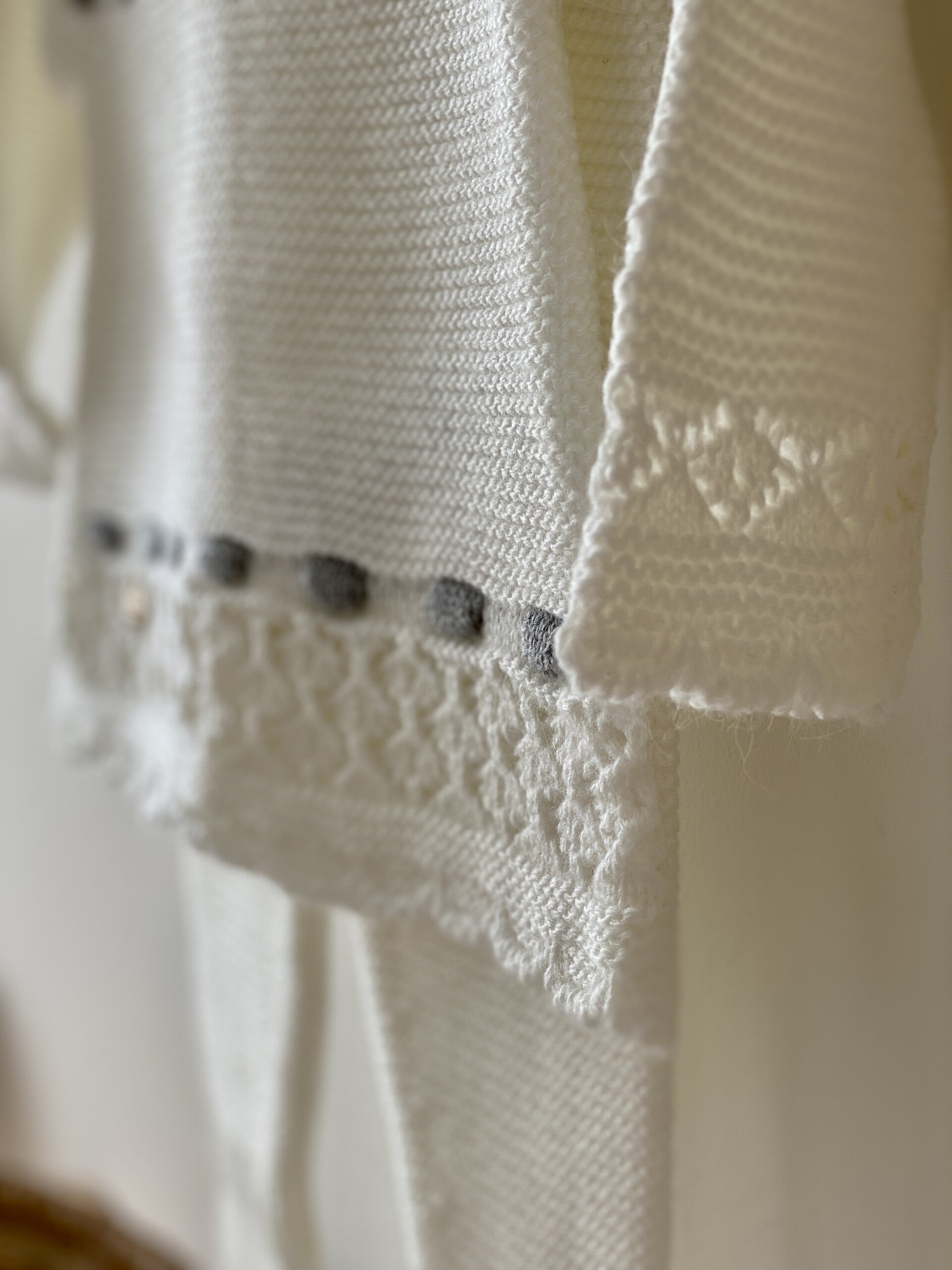 Bewerkt met een prachtig kraagje en ajour patronen in de stof.