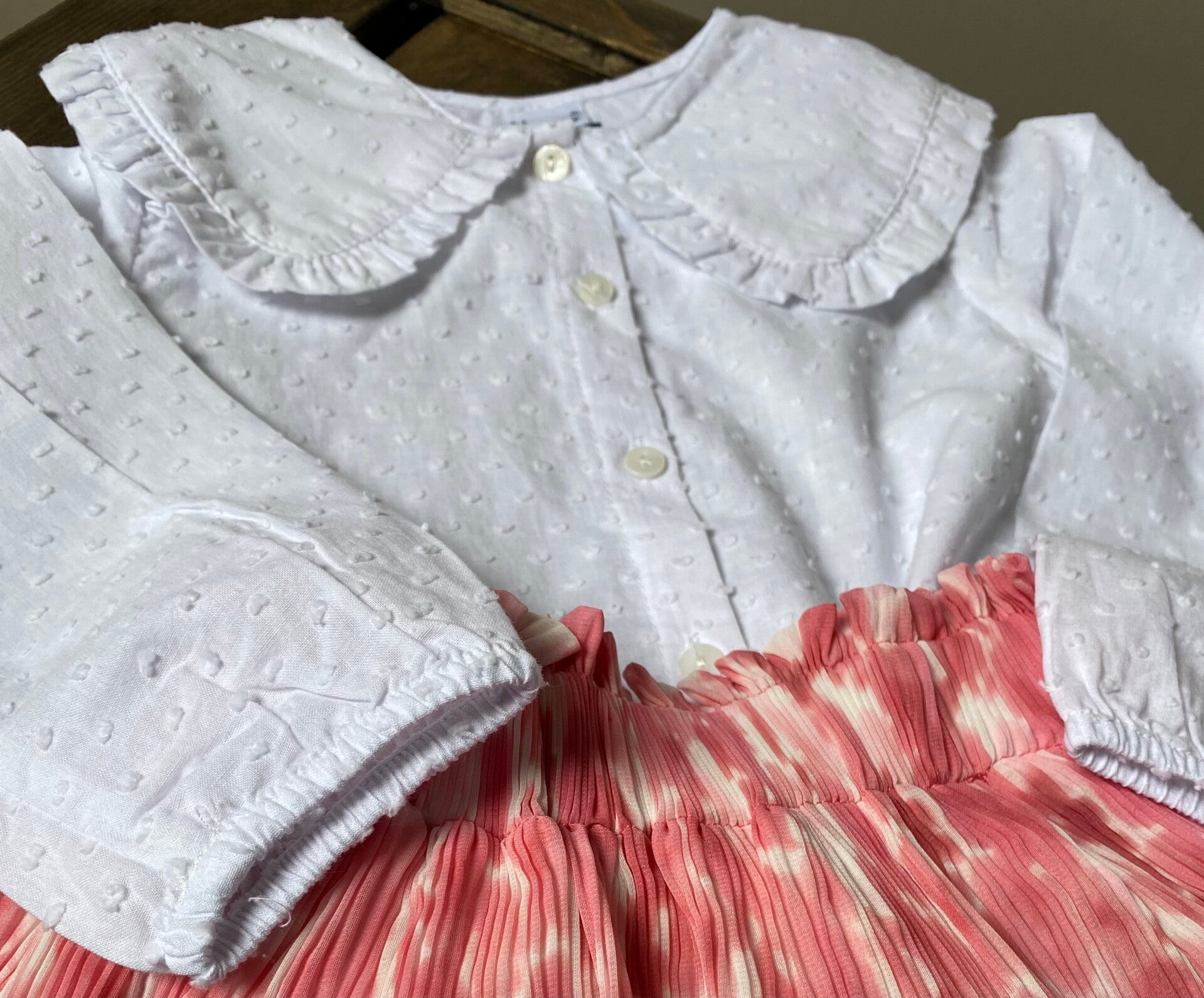 Een eenvoudige witte blouse met kraag een mooie grote kraag.