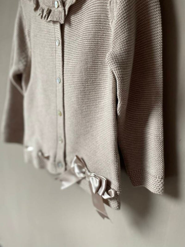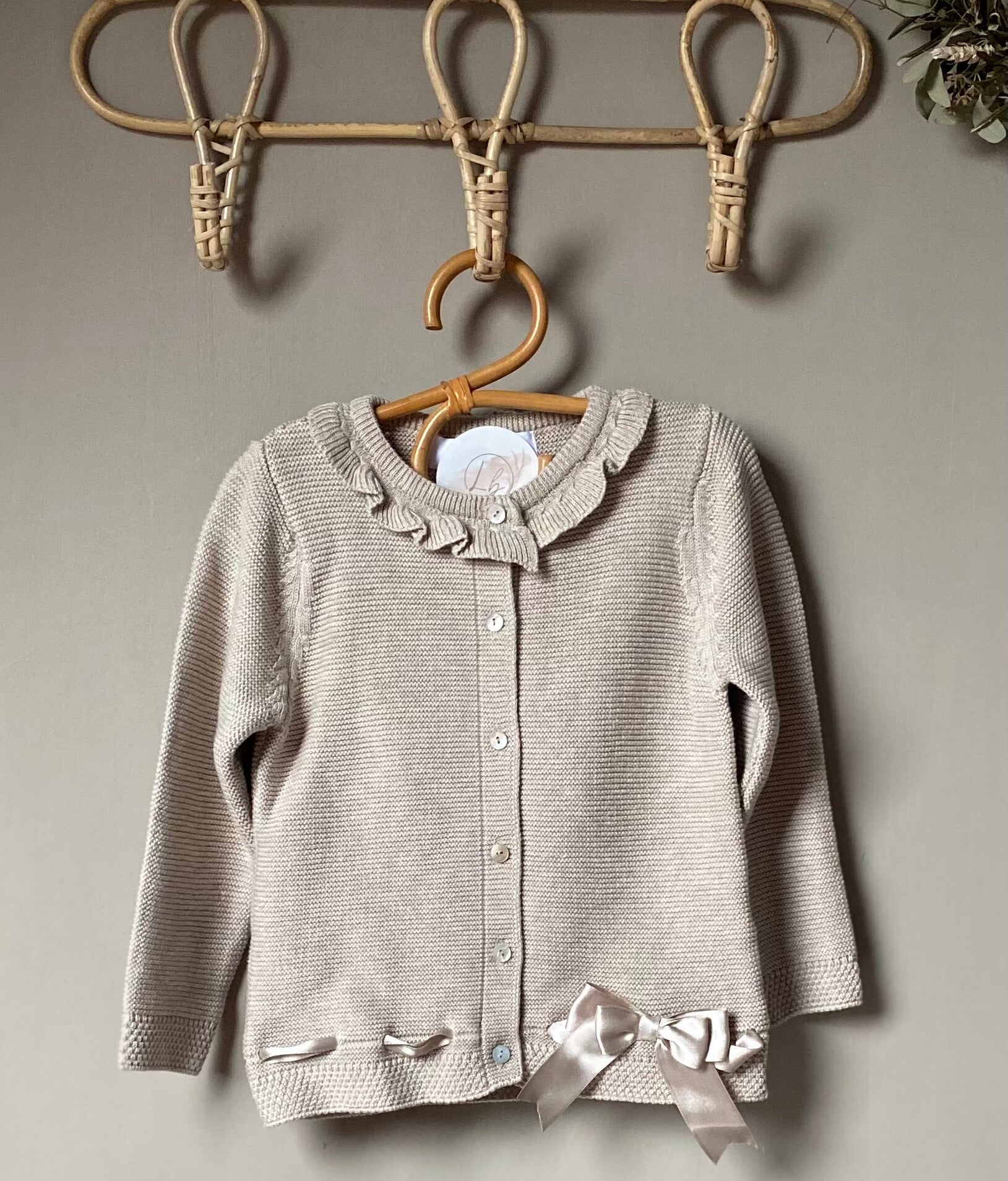Satijnen lint loopt op de achterkant van het vestje door, evenals het kraagje.
